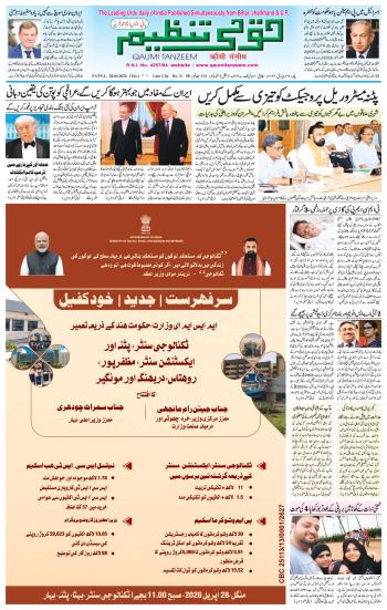 Newspaper Description: Qaumi Tanzeem Urdu Daily is Popular Urdu Daily Newspaper among Urdu readers. Qaumi Tanzeem Urdu is No.1 Largest Circulating Newspaper in Urdu Category.