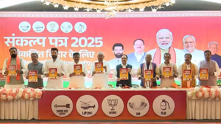 बिहार विधानसभा चुनाव के लिए एनडीए गठबंधन ने अपना घोषणा पत्र, संकल्प पत्र के नाम से जारी कर दिया है। संकल्प पत्र में रोजगार, महिला सशक्तिकरण, कृषि और बुनियादी ढांचे को केंद्र में रखते हुए कई बड़े ऐलान किए गए हैं।